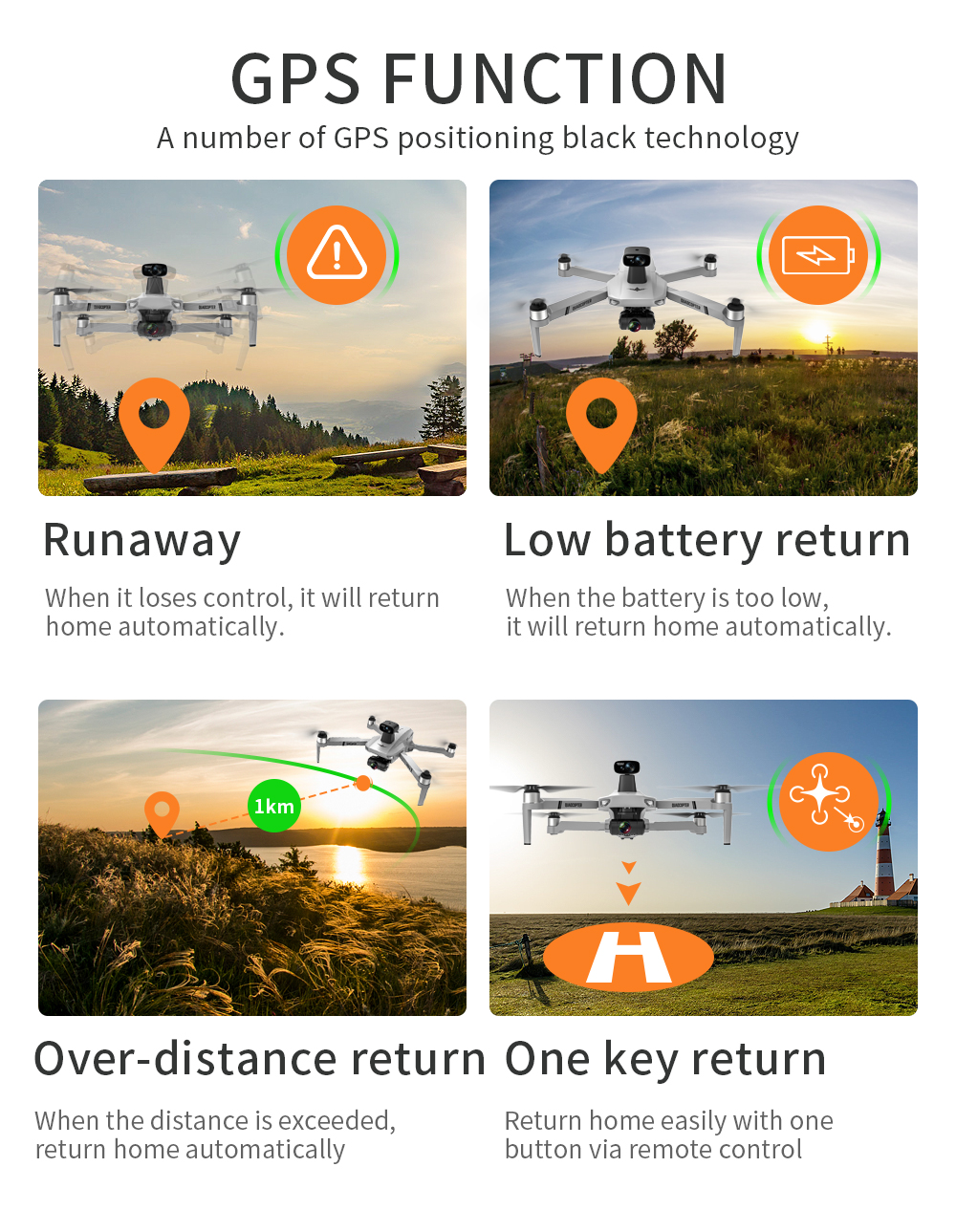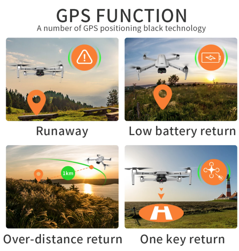 4.GPS Smart following: After the plane left the GPS, it will open the APP following function, and the plane will follow the mobile phone. In addition, Image Following: Detect the shooting object and follow the flight automatically.